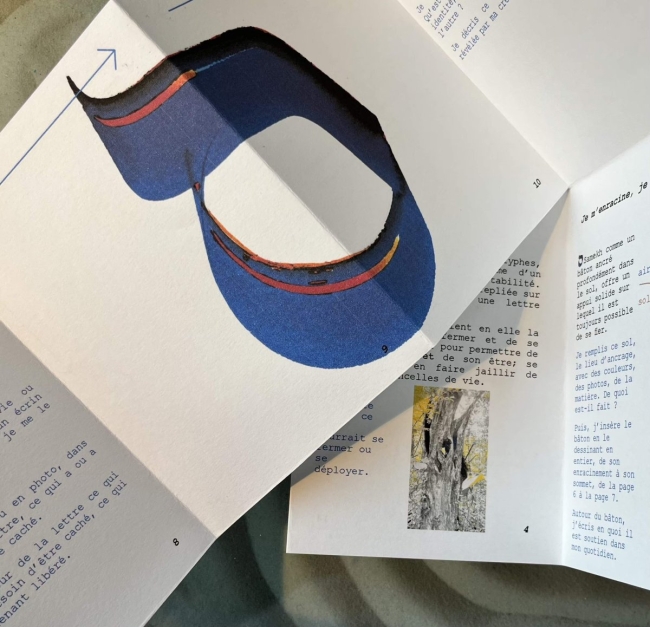 Ce livret à déplier invite à se questionner sur ce qui est soutien, pilier dans le quotidien de l’existence. Après s’être replié dans le secret de son intériorité, que va-t-il éclore de nouveau, d’imprévu ?